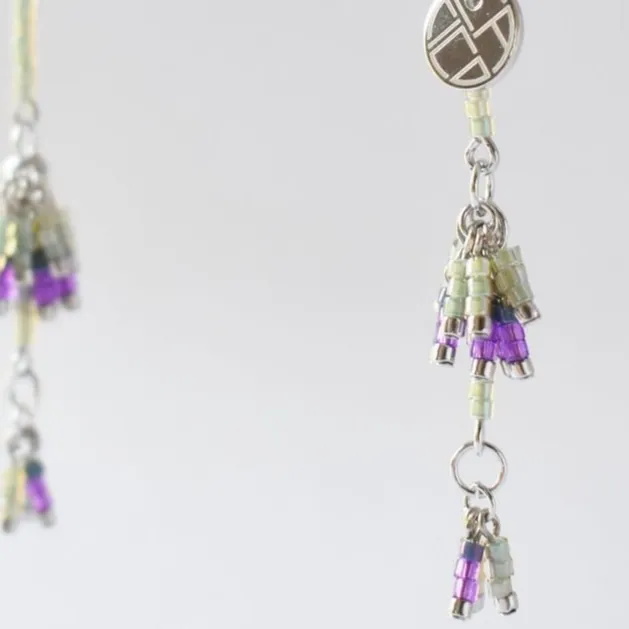 茎を抱きながら段々に連なっている葉わきに 可憐な星形の花をつけるキキョウソウ 桔梗に似た青紫色の小さな花は 下から上へと咲きあがります 果実が熟すと一部がめくれ上がり 種がこぼれ落ちるそうです とても情景的な美しい草花です *こちらは【mini】サイズの商品です。 material SILVER925(ピアス金具)、ガラスビーズ、真鍮、チタン、シリコン *シルバービーズはパラジウムメッキ加工を施したものを使用しております *取り付ける金具によって、使用している金属が異なります size 約9x52mm weight 約1.3-2.4g *取り付ける金具によって、重さが異なります *取り付ける金具によって、重さが異なります *CACICOの商品は全て1点1点制作しているため、個体差があり、商品写真と差がある場合がございます。ご了承の上、ご購入ください。 *金属アレルギーの方はご使用をお控えください *受注生産のため、ご注文確定後1週間〜10日以内に商品を発送いたします