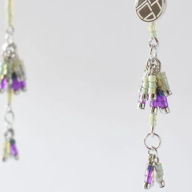 茎を抱きながら段々に連なっている葉わきに 可憐な星形の花をつけるキキョウソウ 桔梗に似た青紫色の小さな花は 下から上へと咲きあがります 果実が熟すと一部がめくれ上がり 種がこぼれ落ちるそうです とても情景的な美しい草花です *こちらは【mini】サイズの商品です。 material SILVER925(ピアス金具)、ガラスビーズ、真鍮、チタン、シリコン *シルバービーズはパラジウムメッキ加工を施したものを使用しております *取り付ける金具によって、使用している金属が異なります size 約9x52mm weight 約1.3-2.4g *取り付ける金具によって、重さが異なります *取り付ける金具によって、重さが異なります *CACICOの商品は全て1点1点制作しているため、個体差があり、商品写真と差がある場合がございます。ご了承の上、ご購入ください。 *金属アレルギーの方はご使用をお控えください *受注生産のため、ご注文確定後1週間〜10日以内に商品を発送いたします