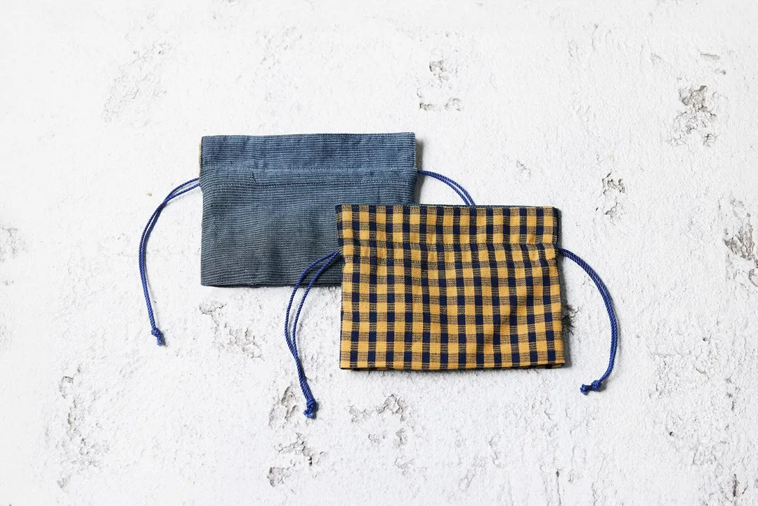 碧のおくるみ 巾着 [巾着:黄柄×ブルーグレー]
