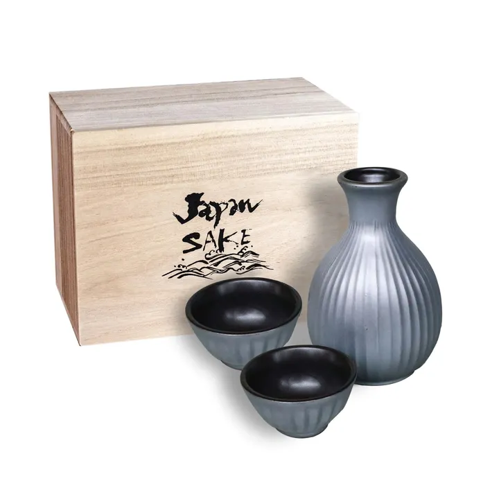 メタルカラー 酒器揃(木箱入) ガレナシルバー