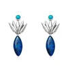 ベゼルセットされたターコイズとマーキス型のラピスラズリに アガベのモチーフをあしらったスタッドピアス