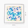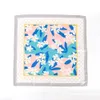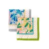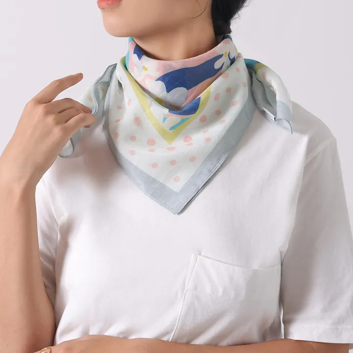 白い花とドット柄を掛け合わせたスカーフ。春夏らしい明るい色目がポイント。バッグの持ち手に巻いてアクセントになるアイテムです。