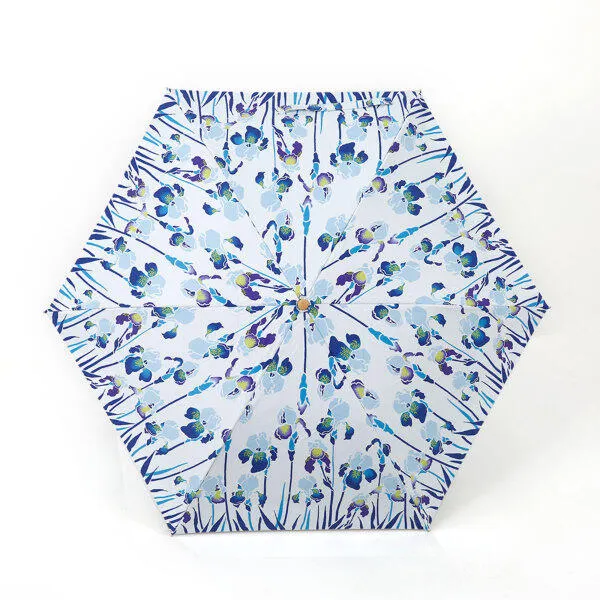 晴雨兼用2段ミニ折りたたみ日傘【はなしょうぶ(薄藍/うすあい)】