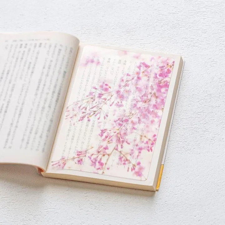 撮影した写真をPET素材に印刷した透明な栞。本に挟むと下地が透けて、文字の世界を鮮やかに彩ります。