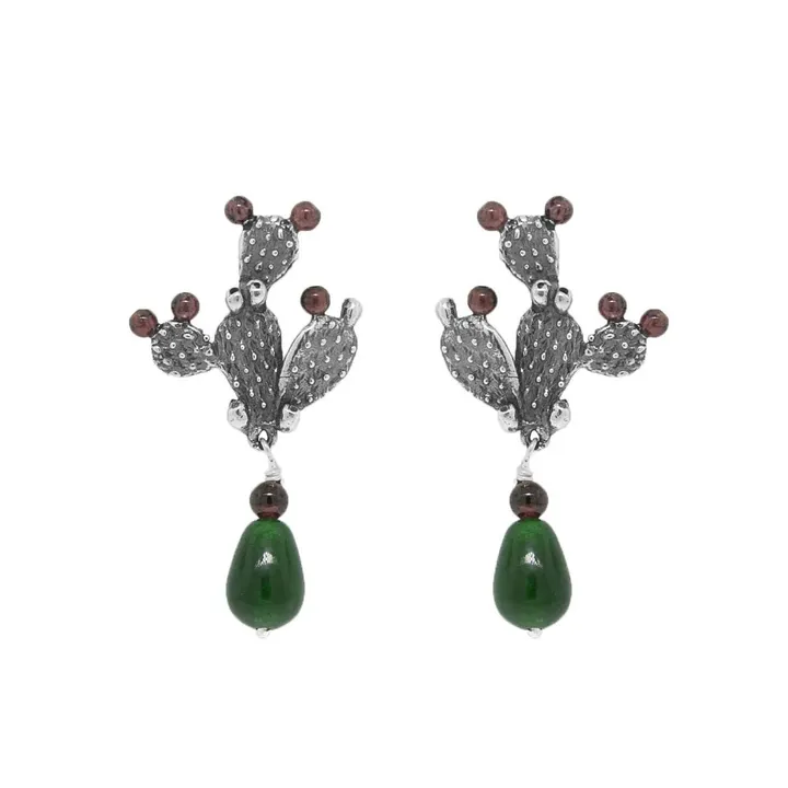 リアルに表現されたサボテンとガーネットにルビーインゾイサイトを合わせのポストピアス 逆境に負けないサボテンのモチーフは美しさと強さを与えてくれます