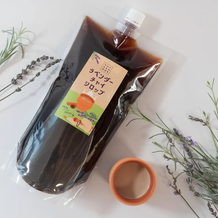 【業務用タイプ ラベンダーチャイシロップ】 1本 インド発祥の飲み物、マサラチャイ。 本来はカルダモンなどのスパイスを使うことが多いですが、ペザンではスパイスを使わず、ラベンダーを中心に、シナモンバジルなどのハーブをたっぷり使いました。 このラベンダーチャイシロップをホットミルクや豆乳でわります。 炭酸で割るとコーラ風に。 バニラアイスにかけてもOK。 気分に合わせて、アレンジを楽しみください。 ・添加物(香料、保存料)は使用して おりません。