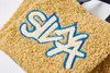 相良(さがら)刺繍✖エコファー立体バッグ 相良(さがら)刺繍とは・・・ 生地の表から糸を抜き出して結び玉を作り、これを連ねて模様を描きだす技法。 たいへん手間と時間を要する刺繍方法。 立体的な視覚効果もありとても丈夫な刺繍技法。 今回は、SILNAロゴを相良刺繍でPOPに表現しました。 1枚の紙から立体パターンで生産された立体的バッグ。 4か所の容れ口があり、モノもしっかり入る特徴があるモコモコバッグです。 品番:SB3107 カラー展開:BLACK / BEIGE / GRAY サイズ詳細:W35×H25×D12 、ハンドル高さ14㎝ ハンドルの高さ:14cm ハンドル素材:牛革 ショルダー:牛革 スペック:内側ポケット1,背側牛革ポケット(W11×H6.5)1 素材:表面/ポリエステル、バッグ底/牛革 生産国:中国 お手入れ&保管方法 お手入れに関する注意事項を記載した下げ札を商品に付けています。 水濡れ注意&丸洗い不可です。 保管する場合は、異素材との密着は避け風通しの良い場所で保管してください。 ご購入・返品につきまして お客様都合による返品・交換は、ご遠慮いただいております。 ご理解の程、よろしくお願い申し上げます。