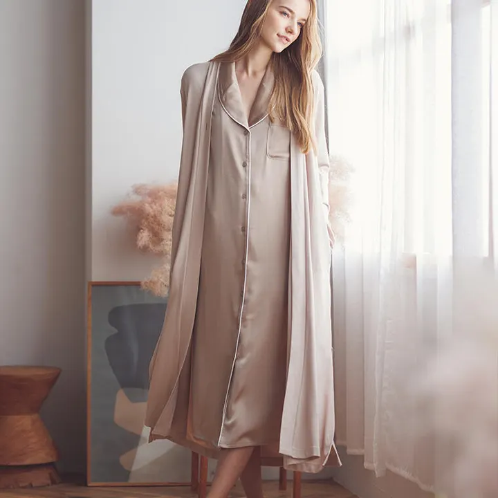 【デザイン・シルエット】 シャツ衿の形状にトレンドを取り入れ、少しゆったりめのサイズ感にしながらも艶のあるとろみが美シルエットを実現。 寝ている時も快適な着心地にこだわりました。 【素材・サイズ感】サテン生地の肌触りのいい素材を使用。ゆったりしたサイズ感で、 ストレスフリーな着心地。アームホールも大きめな開きなので、腕回りもノンストレス。