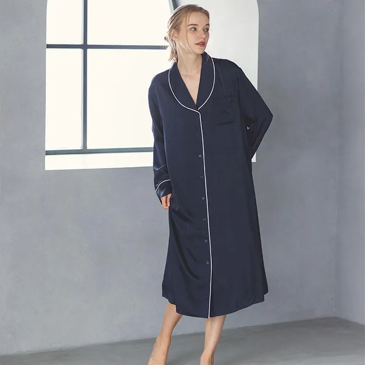パジャマ ルームウェア サテン ワンピース ルームウェア chelcy-1 L ネイビー