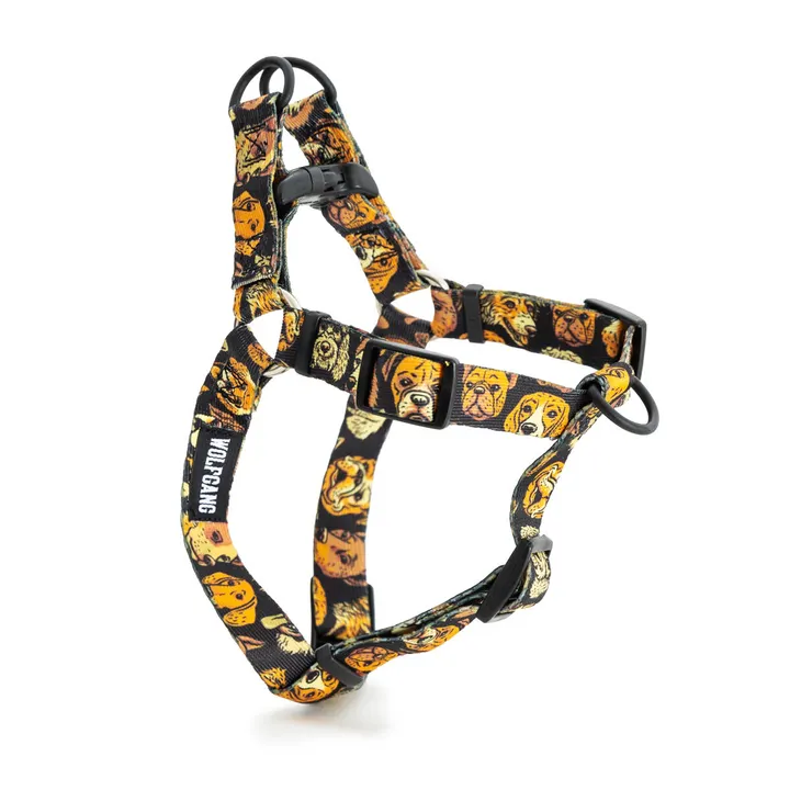 犬用のハーネス。 WOLFGANG MAN & BEAST のリードやカラー(首輪)は、車のシートベルトなどにも使われる、強度と柔らかさ、耐久性を兼ね備えたポリエステル100%のウェビング素材を使用しています。 水を吸い込まない、極細のポリエステル糸を非常に密に編むことによって、海や川でも使用可能、汚れや臭いもつきにくい特徴があります。 さらに、ウォッシャブルで洗濯も可能。 アウトドアでの使用にもピッタリです。 製法には、ウェルディング製法( 生地を熱で溶かすことによって生地同士を接着し、強い耐久性を実現する溶着製法 )を採用。 糸による縫い目が無いので、飼い主・愛犬にとって快適な使い心地を実現。通常の縫製による擦れからの糸のほつれが生じることがありません。   WOLFGANG MAN & BEAST のすべてのドッグプロダクトは、こだわりのアメリカンメイド。 ドッグプロダクトは、大切なパートナーである愛犬が、長年愛用できるものであってほしい。 その思いから、選び抜かれた素材を使い、品質にこだわり、WOLFGANG MAN & BEASTのすべてのドッグプロダクトはアメリカ国内で生産されています。 <Sサイズ:対応犬種の目安> ジャック・ラッセル・テリア/パピヨン/マルチーズ/シーズー/ヨークシャーテリア/キャバリア/ホワイト・テリア/ミニチュア・ダックス ...etc <Mサイズ:対応犬種の目安> パグ/コッカスパニエル/シュナウザー/ボストンテリア/フレンチブルドッグ/オーストラリアン・キャトル・ドッグ/スタッフォードシャー・ブル・テリア/ブリタニー/サルーキ/ビーグル/柴犬/ダルメシアン/ウェルシュ・コーギー/ボーダー・コリー ...etc <Lサイズ:対応犬種の目安> ボクサー/ゴールデンレトリバー/ジャーマン・シェパード/ロットワイラー/シベリアン・ハスキー/ブルドッグ/コリー/アメリカン・ピットブル・テリア ...etc 上記の犬種はあくまで目安です。個体によりサイズは変わりますので、購入前に必ず愛犬の実際のサイズを計測して適合サイズを確認してください。 【MugShot】(マグショット)- お気に入りの犬種はどこにいるかな? あなたの大好きな犬種を見つけてください!