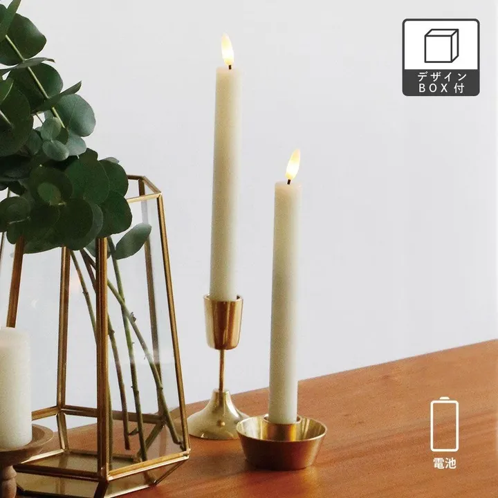 パーティーを楽しむデコレーションアイテムとして、人気のLEDキャンドル。インテリアとして使うのも良し、家族でのクリスマスパーティや誕生日パーティを彩るアイテムとして使うのも良しです。 本物のワックスを使用して作られたLEDのキャンドルなので、火事の心配がなく、小さなお子さまやペットのいるご家庭でも安心してご使用いただけます。ベッドサイド、テーブル、本棚、玄関など、お好きな場所に置いてお楽しみください。 ドライフラワー、ブリザードフラワーのアレンジメントにもおすすめです。 下記のスタンドと合わせてお使いいただけます。 *423807 アイアンリース オーバル *305024 アカシアキャンドルスタンド *108437 アカシアキャンドルホルダー
