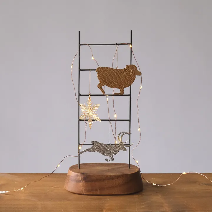 小さなアイアンラダー(はしご)とアカシアプレートを組み合わせたアクセサリースタンド。 日々出番の多い、お気に入りのアクセサリーやメガネなどをかければ、ついつい散乱しがちな小物類をスッキリお洒落に収納できます。 クリスマスなどのシーズンイベント時には、オーナメントやLEDライトをまとわせて、玄関のウェルカムスペースやリビングに飾れば、個性豊かなディスプレイ演出も! 組み立て式の仕様なので、使わない時にはコンパクトに収納が可能です。 生活スタイルや置き場所に合わせて選べるサイズ展開も嬉しいポイント。 アイアン部分は職人の手作業で溶接など加工を施しており、マットな質感なのでインテリアにもよく馴染みます。 ウッド部分は天然素材のため、木目や色目が一つひとつ違うので木の温かさを感じることができ、空間全体を柔らかい印象にしてくれます。