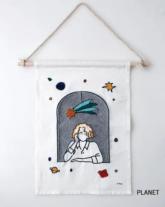 お部屋に絵を飾りましょう。パンチニードルで塗り絵をするようにカラフルな糸をステッチすればタペストリーが完成します。タペストリーを飾ればたちまち部屋が明るく変身!フリンジを付けるなどのアレンジも楽しんで。※こちらの商品は飾るための木製の棒とロープはセットされておりません。別途ご用意ください。
