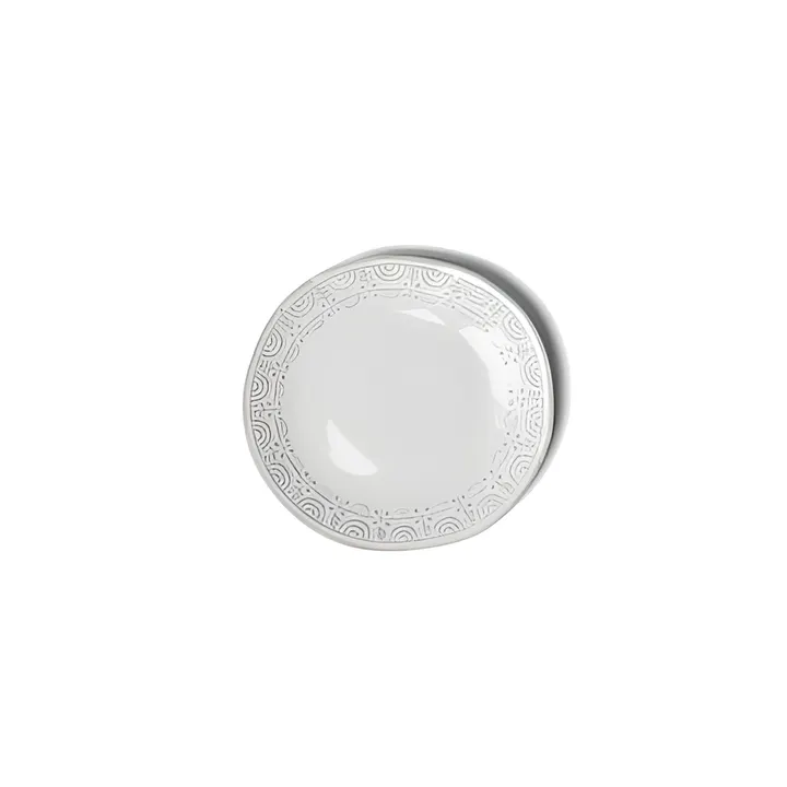 お菓子を乗せるのにちょうどいいサイズのプレートS。少し深さをつけ使いやすい機能的なフォルムになっています。 シンプルなミュレットの色合いと、抽象的な図案が効いたデザインがいっそう引き立てます。 レリーフシリーズはアイテムごとに彫り込んである図案が異なり、少し深さがあり、毎日使いやすい機能的なフォルムになっています。 「レリーフ」と「ライン」の形状は、プレートのS,M,L,LLサイズ、ボウルのS,Mサイズが同じサイズですので、合わせて揃えるだけでなくお好きなタイプを混ぜても使える、遊び心のあるラインナップです。 Mulet(ミュレット) スウェーデン語で「くもり空」という意味を持つ「Mulet」は、その名前の通り、白と灰色のニュアンスのある色合いが印象的なシリーズです。 色合いだけ見ると、ともすれば冷たい印象を受けそうですが、Muletにはあたたかな雰囲気が宿っています。それは、あえて1点1点少しずつ異なる形に仕上げた歪みのある形、釉薬の濃淡などから、手仕事の跡やぬくもりが伝わってくるから。決して派手さはありませんが、お料理をそっと静かに引き立て、例えば異素材である木や金属、ガラスなどの器やカトラリーなどにもしっくりと馴染みます。 Muletシリーズは土からオリジナルで開発するこだわりをもって作られています(一般的には製土屋さんから土を購入し、そのまま使用されるつくり手さんが多いのです)。コバルトや鉄分を多く含んだ土に、日本で古くから使われてきた信楽焼のさっくりとした荒い土をブレンドした黒土に磁器の成分を20パーセントほど足し生地の強度を上げ、オリジナルの乳白の釉薬を掛け、何度も試作を重ねてようやくこの独特の色合いが完成しました。 そして、このシリーズを作るために岐阜県に構えた自社工房にて、攪拌機で練り上げ、1250度で焼き上げます。高い温度で焼き締めているので、薄くて丈夫な仕上がり。電子レンジや食器洗い機を使うこともでき、とても実用的です。 Muletには「レリーフ」「ライン」「ハンド」の3種類のラインナップがあります。 植物模様が華やかなレリーフ、どんなお料理にも合うシンプルな縁のライン、そしてデザイナー自身がロクロで手引きした原型に忠実な形状と、シーンやお好みで楽しんでお選びいただけます。