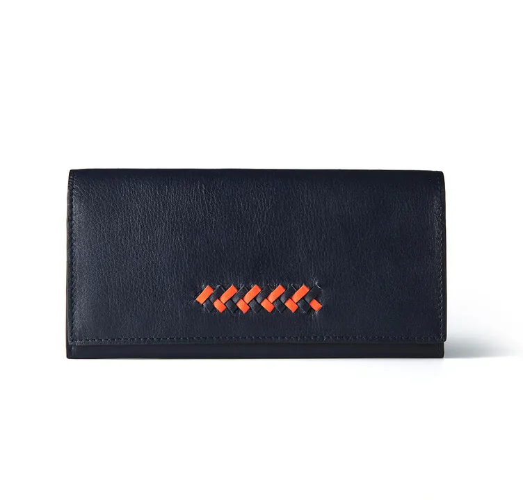 ーーーオリジナル編み込みモチーフが特徴のササマチ長財布 スリムな設計でビジネスシーンにも普段使いにも最適なササマチ長財布。 オレンジとネイビーブルーのSOLSOMAREらしいカラー配色が特徴です。 ーーーお財布の機能について 小銭入れが1か所、カードが10枚収納でフリーポケットを4つ装備、マチ付き札ポケット1か所とスマートながら使い勝手抜群の長財布です。胸元のポケットやバッグにもスマートに入れられます。 ーーー素材について 軽く手になじむ国産牛革スムースを使用。軽さとすべすべとした滑らかな手触りを感じながらお使い頂けるのが魅力です。経年変化は比較的にゆっくりなので、綺麗な状態で長くお使いいただけます。 小銭入れのファスナーはYKKエクセラファスナーを使用しているので、動きも滑らか。 ーーーブランドBOX入りでギフトにも最適 いつも頑張っている自分へのご褒美として、または大切な方への贈り物としても。 商品は一つ一つブランドBOXにお入れいたします。 ーーアイテム詳細 [サイズ] H:97 W:188 D:20 [機能] カード×10 ファスナー付コインポケット×1 フリーポケット×4 札入れマチ付きポケット×1  ファスナー×1(YKKエクセラファスナー) [カラー] オレンジ/ネイビーブルー ※掲載商品の色味は出来る限り実物の色味に近づけておりますが、ご利用のパソコン、スマートフォン、モニター環境によって、画像の色味が異なって見える場合がございます。予めご了承下さいませ。 [素材] 国産牛革スムース/ナイロン