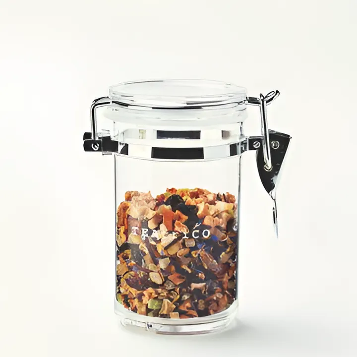 ティートリコのロゴ入りアクリル製オリジナルキャニスター。 ・ティートの保管に! ・ハーブやコーヒー豆をいれて並べると、カフェ風インテリアに! ・クッキーなど、手作りスイーツをいれて、プレゼントとしても! ふた部分は、パッキン付きで密閉できるので、保管の際に中身が空気に触れにくくなっています。 中が見えるので、見せる収納やインテリアとしてもお楽しみいただけます。 食品以外にも、ハンドメイド用のパーツなどをいれてもOK! 入れるものによって、様々なシーンで活躍するクリアなキャニスター、 キッチンやお部屋のオシャレ度を、さりげなく上げてくれるアイテムです。