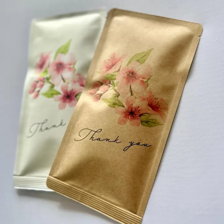 ありがとうの気持ちをお茶メールに込めて... 日頃お世話になっている方々へのお礼にお茶ギフトを贈ってみませんか? 春のご挨拶にぴったりの桜の花デザインです。 ①煎茶ティーバッグ 20g(2g×10P) 静岡県掛川市産の茶葉を使用し、お茶本来の甘みと旨みを引き出しました。 まろやかな口当たりと、ほどよい渋み、ふわっと広がる良い香りが特徴です。 お茶に含まれる「カテキン」「カフェイン」「ビタミンC」などの有効成分には、 抗菌作用・免疫機能の向上、疲労回復、美肌効果など、身体に嬉しい効果が期待されています。 食後の一時や、リラックスタイムにもオススメです。 ②和紅茶ティーバッグ 15g(3gx5P) 静岡県掛川市産の和紅茶ティーバッグです。 苦味・渋味成分がなく、ほのかな甘みで、お砂糖なしでもおいしく頂けます。 食事の時や日常のお茶として気軽に楽しめる紅茶です。 ■ おいしい入れ方 カップにティーバッグを 1つ入れてください。 カップにお湯を注ぎ約30秒待ちます。 ティーバッグを数回上下させ きれいな色になったら飲み頃です。 氷を入れたらコールドドリンクの出来上がり! ■裏面のデザインを、『郵送用』『手渡し用』からお選びいただけます。 【郵送用】 110円切手を貼ってポストに投函するだけで 煎茶ティーバッグを 手紙のように送ることができます。 余白に自由に書き込み可能! ボールペン、サインペン、鉛筆などで簡単に書くことができます。 プチギフトにもおすすめです。 【手渡し用】 余白に自由に書き込み可能! ボールペン、サインペン、鉛筆などで簡単に書くことができます。 企業様、飲食店様のノベルティーギフトにもおすすめです。