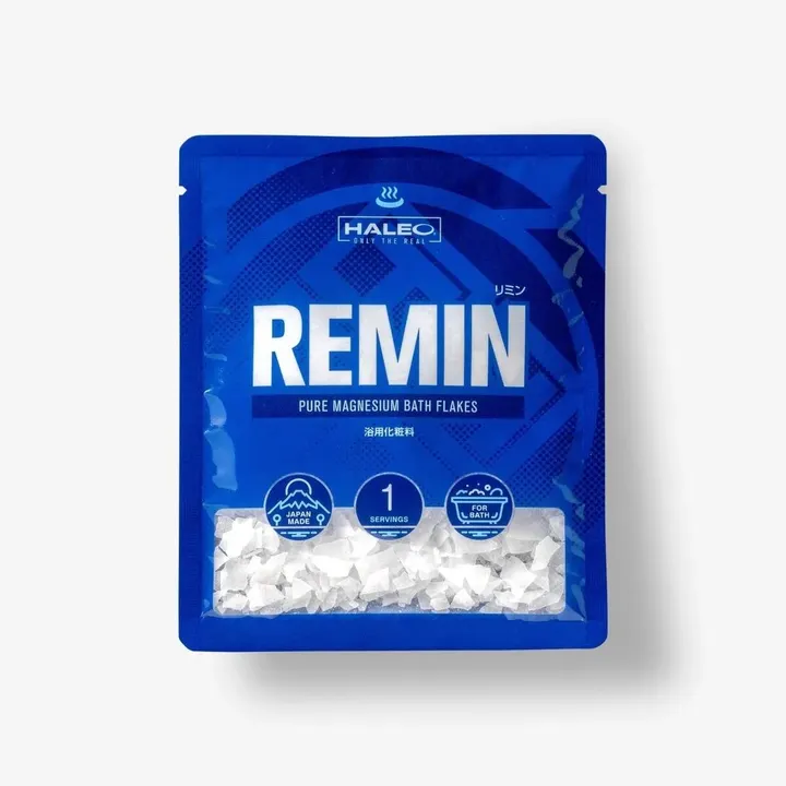【カラダの芯からボディケア、いつものお風呂を最高のひとときに】 バスタイムの常識が変わる、マグネシウムバスフレーク マグネシウムフレークとは マグネシウムフレークは海中にも含まれるミネラルの一種で、正式な成分名は塩化マグネシウム。 その中でもまるで水晶のさざれのような美しいフレーク状の結晶をしたものを「マグネシウムフレーク」と呼んでいます。 塩化マグネシウムは日本人には馴染みの深い「にがり」の主成分でもあり、海水の塩分のうち9.6%がこの塩化マグネシウムにあたります。 国産最上級の食品グレード100%、無香料、無着色、防腐剤無添加のピュアマグネシウムフレークです。 エプソムソルトを凌ぐ、マグネシウム含有量 数年程前からアスリートや海外セレブなどに注目され人気を集めている「エプソムソルト」。 「国産エプソムソルト」のマグネシウム含有量は8220mg(100g中)。 それに対し、同じマグネシウム系入浴剤である「HALEO REMIN(リミン) - ピュアマグネシウムバスフレーク」のマグネシウム含有量は10600mg(100g中)。 マグネシウムフレークは圧倒的に多いマグネシウム成分を含んでいる。(メーカー比) 米国では既に流行の兆し エプソムソルトよりもマグネシウム含有量が多く保湿効果も高いことから、すでにアメリカでは流行の兆しを見せている。日本でも今大注目の、最も新しいバスフレーク 国産最上級(食品グレード)マグネシウムフレーク100% 厚生労働省指定検査機関による成分分析をはじめ、重金属検査や放射能検査も実施。 製造は東京都知事の認可を受けた、提携化粧品製造工場にて行い、徹底した品質管理のもと製品化。 原料は国産(瀬戸内産)、最上級品質である食品グレード100%。 そもそもマグネシウムとは? マグネシウムは人体に必要不可欠なミネラルのひとつ。 体内のマグネシウムが不足すると、様々なトラブルの原因に…。 さらにマグネシウムは体内では作られないため、外からしっかりと補う必要がある。 マグネシウムは食品やサプリメントから摂取する方法はもちろん、入浴剤としてお風呂に入れれば皮膚からも吸収できる。(※注) REMIN(リミン)でご家庭で手軽にマグネシウム入浴をお楽しみいただきたい。 (※注)英国バーミンガム大学school of Biosciences, Dr,RH Waringによる硫酸マグネシウムの経皮吸収に関する論文から ポカポカのお風呂に 寒い冬はもちろん、冷房で冷えがちな夏も、シャワーだけで済ませずゆっくり湯舟に浸かって体を温めよう。 REMIN(リミン)を入れたお風呂に入浴すると、皮膚たんぱく質とマグネシウム塩が反応して皮膚の上に膜ができ、熱が冷めにくくなる。 アイスバスにも 冷水にも溶けるため、激しい運動直後のリカバリーにアイスバスを取り入れているアスリートに。 HALEOの国産マグネシウムフレーク 無添加:入浴剤を入れたお湯は、化粧品と同じでお肌に直接触れるもの。 HALEO REMIN(リミン) - ピュアマグネシウムバスフレークは、無香料、無着色、防腐剤無添加、パラベンフリー、鉱物油フリー。 国産:HALEO REMIN(リミン) - ピュアマグネシウムバスフレークは日本製。瀬戸内海に面した製塩工場で製造されています。 国産100%、しかも品質は最上級の食品グレードで、万が一口に含んでしまっても差し支えございません。 ■■■こんな方にオススメ!■■■ ✔ カラダの冷えがきになる ✔ 日常の緊張や仕事からのコリが感じる ✔ 肌のうるおいが気になる ✔ ヘトヘトな毎日に癒しがほしい ●国産 ●香料無添加 ●無着色 ●防腐剤無添加