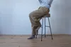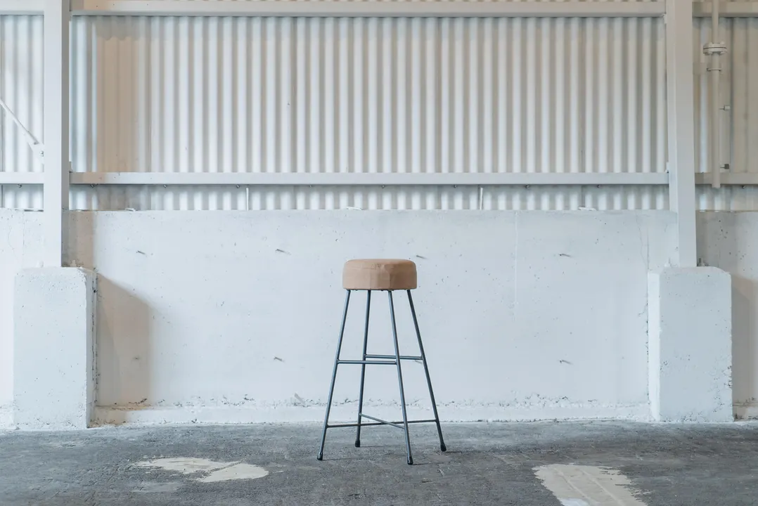 -CANVAS STOOL- どこか懐かしく暖かみのあるスツール。 無骨なイメージのあるアイアンの鉄脚ですが、細めの鉄棒を使用することよってシンプルなシルエットに仕上げました。丸みのある座面は2層のウレタンクッション入りなので長時間座っても疲れにくいです。 張地にはロウ引きした帆布を使用しておりますので耐水性もありますし、使い込むことで独特のアタリやシワがでてきますので経年変化もお楽しみいただけます。 カラーは、カーキとベージュからお選びください。 (画像にはLOW STOOLも掲載しておりますが、実際はHIGH STOOLのみになります。)