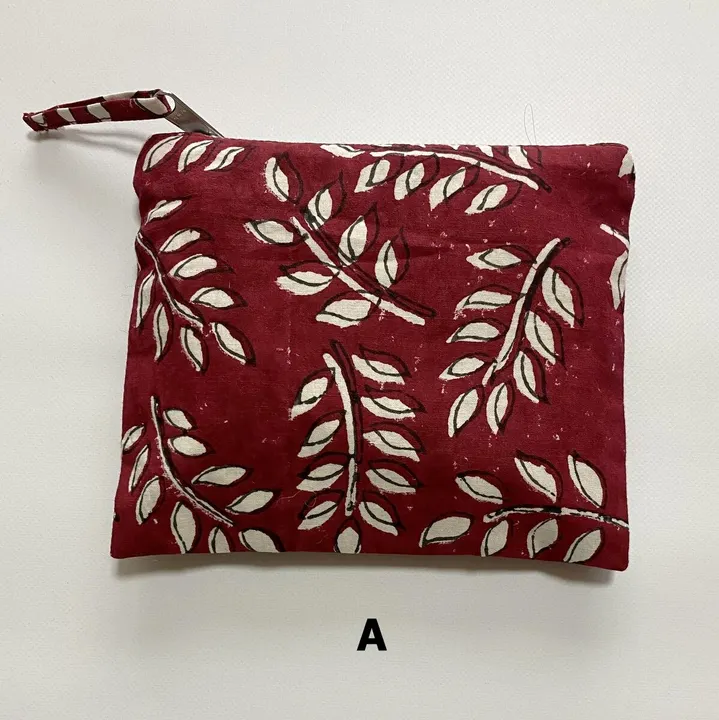 ブロックプリントのフラット(マチなし)ポーチSサイズ【フェアトレード】 A