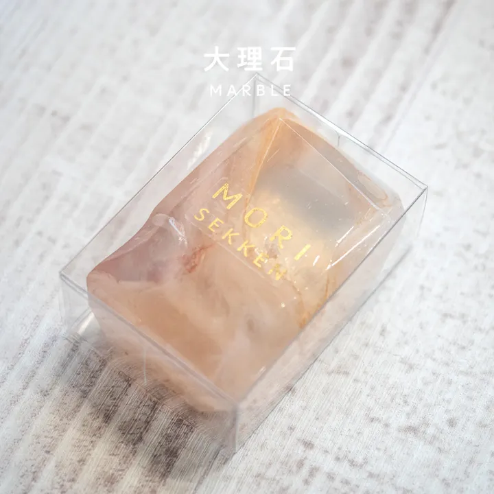 宝石のように輝き、爽やかな香りが広がる石鹸。 きめ細かい優しい泡が、顔も体も手も、しっとりと包み込みながらさっぱりと洗い上げます。 すべて職人の手作りで、ひとつひとつに心がこもった特別な一品です。 ※ミルキーウェイのみ、表面のラメを洗い流してから洗顔にお使いください。 ※一つ一つ手作業のため、模様の出方やカットの誤差、ロットによる色味の違いがございます。ご了承ください。 標準重量/約55g(枠練り石けん: ±10%の誤差がございます) 成分/石けん素地、グリセリン、水、PG、ソルビトール、ラウレス硫酸Na、ラウリル硫酸Na、塩化Na、クエン酸、クエン酸Na、ペンテト酸5Na(24年4月以降の製造のロットはイミノジコハク酸4Na)、エチドロン酸4Na、香料 +/- マイカ、酸化鉄、酸化チタン、黄203、赤227、青1、緑3 (ミルキーウェイのみ)成分/石けん素地、グリセリン、水、PG、ソルビトール、ラウレス硫酸Na、ラウリル硫酸Na、塩化Na、クエン酸、クエン酸Na、ペンテト酸5Na(24年4月以降の製造のロットはイミノジコハク酸4Na)、エチドロン酸4Na、香料、酸化チタン、酸化鉄、マイカ、緑3、赤227、青1、アクリレーツ/アクリル酸アルキル(C10-30))クロスポリマー、セルロース、グリセリン、水、Al、コーンスターチ、ポリビニルアルコール ※原料の仕入れにより成分を予告なく変更することがございます ・お肌に異常が生じていないかよく注意して使用してください。お肌に合わないときは、ご使用をおやめください ・暑い所や湿気の多い所に保存すると保湿成分が水分を引き寄せ、表面に汗をかいたようになります。拭き取ってご使用ください ※経年や環境の影響で水分が蒸発し、重量が減る場合があります。  また、石鹸の収縮により表面のラップにしわが生じることがありますが、ご使用には問題ございません。  美しいうちに早めにお使いいただくか、ある程度密閉できる容器で保管すると、長くお楽しみいただけます。 ピンクピオニー ソフトでモダンなフローラル カシス、ベルガモット、レモン、シャクナゲ、蜂蜜、牡丹、タンポポ、ホワイトムスクのブレンド ヨーグルトシェイク クローブ、ベリー、オレンジ、トンカ、イランイラン、クリーミーなバニラ、ミルラのブレンド スペアミントユーカリ ユーカリ、スペアミント、ラベンダー、柑橘類、マリーゴールドのミックス ピーチメルバ ピーチメルバの香り 南国ピーチとブラックラズベリーバニラのフレッシュなブレンド エメラルド メロン&リュウゼツランの香り メロン、リュウゼツラン、トケイソウ、アサイー、アロエのフレッシュフルーティーブレンド ガーネット フレッシュカットローズの香り フラワーショップで感じるようなフレッシュでリアルなバラのブーケの香り サファイヤ ベルガモット、ナツメグ、チュベローズ、ジャスミンの香り 少しスパイシーで温かいシトラスフローラル調のブレンド シトリン レモン&オレンジスイートの香り レモンとオレンジスイートの新鮮な精油を使用 アメジスト ブルガリア産真正ラベンダー精油の香り ブルガリアの農家が自社で栽培した旬のラベンダーの香り ゴールデンオレンジ さつまオレンジの香り 太陽をたくさん浴びた柑橘類の甘く力強い香り ミルキーウェイ ベルガモットブラックティーの香り ベルガモット、ライム、アールグレイ、キュウリ、ミツロウ、アンバー、ムスクのミックス 大理石 ゼラニウム精油のスッキリした野の花のような香り