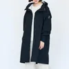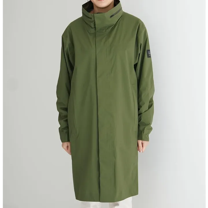都市の暮らしにマッチする、コート丈のレインジャケット。 本格アウトドア用に匹敵する耐水圧と透湿性を備えた「BARRIER EFFECT.」によって水分含浸を防ぎつつ、衣服内の蒸れを素早く解消してくれる。 軽量でしなやか、かつストレッチ性を備えた生地はストレスフリーの自然な着心地を実現。 フードは天候やスタイルに合わせて襟の中に出し入れ可能で、フーディ・スタンドカラー両スタイルに対応している。 左右にハンドポケット。 本体は左ポケットに畳んで収納可能なパッカブル仕様で持ち運びも容易。