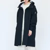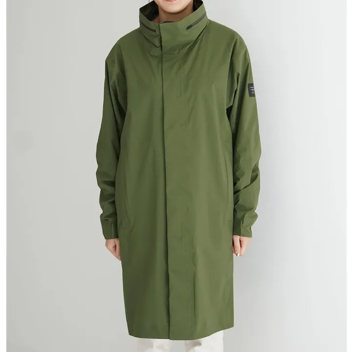 都市の暮らしにマッチする、コート丈のレインジャケット。 本格アウトドア用に匹敵する耐水圧と透湿性を備えた「BARRIER EFFECT.」によって水分含浸を防ぎつつ、衣服内の蒸れを素早く解消してくれる。 軽量でしなやか、かつストレッチ性を備えた生地はストレスフリーの自然な着心地を実現。 フードは天候やスタイルに合わせて襟の中に出し入れ可能で、フーディ・スタンドカラー両スタイルに対応している。 左右にハンドポケット。 本体は左ポケットに畳んで収納可能なパッカブル仕様で持ち運びも容易。