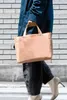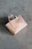 【テレビで取り上げられました!】 2022年8月放送のなりゆき街道旅にて、草刈民代さんにこちらのトートバッグのTANをご購入頂きました。 Material:表革 / Shrink leather 裏地 / 綿100% タンニン染 Size:H230 × W300 × D120mm Wight:新モデル 約430g 旧モデル 約550g 従来モデルよりも軽量化しました。 ※天然皮革を使用しているため、記載の重さと多少の誤差が生じることがあります。 レザーの上質感を肌で感じる、手で持ちたくなるトートバッグです。 A4サイズのファイルが収納可能。 シンプルなデザインと、ほどよい大きさがポイントです。 ハンドルは表側(背中の部分から)、裏側(腹側の部分から)でレザーをセレクトし強度と手に馴染む感覚を考慮。ハンドルの幅はやや太めですが、やさしく安定感のあるバランスを重視しました。ハンドルと本体はしっかりと手縫いで縫い留め、そのステッチがポイントとなっています。 裏地には、綿100%の平織の柿渋染の生地を特注で依頼しライナーとして採用しました。 布帛ならではの軽さと天然素材の柿渋ならではの効果、風合いをお確かめください。 底板にも革を使用し、ソフトで安定感もあります。 外側にポケットが2つあるのでスマートフォンなども収納できます。 カスタムオプションを追加する場合、在庫切れのカラーでご注文いただくことが可能な状況がございます。 お気軽にお問い合わせください。 【注意事項】 ・商品のお色はPC環境によって多少色合い、見え方など違ってまいりますのでご了承ください。 ・部位によっては牛が元々持っていたしわや小さな傷がありますが、自然の風合いとしてお楽しみください。 ・職人が一つ一つ手作業で製作していますので革の表情は少々異なる場合があります。