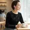 ベロアリボン柄立体プリント長袖Tシャツ・エレガントな艶感トロミタッチストレッチ性素材 BLACK-FREE