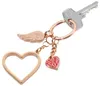 ハート型のキーリング、ラブイズインザエアー、ローズゴールド(2つのハート、羽根)/キーホルダー、バッグチャーム/TR-KR17-01-RG