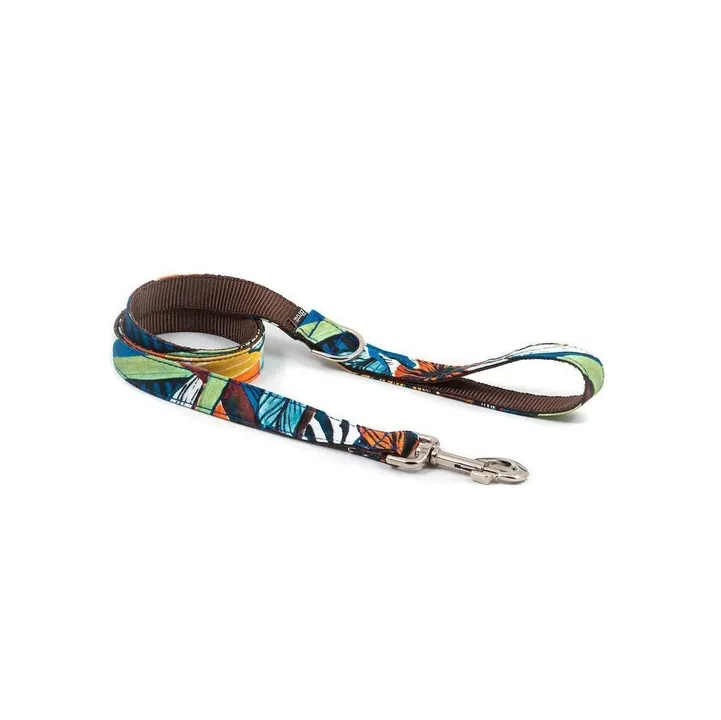 トロピカルスタイル(PORTLLIGAT) ポルトリガト 陽気なリゾートを彷彿させる華やかで明るいカラーが特徴です。 グリーン、ブルー、オレンジなど鮮やかで多様な色彩が織りなす、オリジナルデザイン。 ハンズフリーリードは長さ約210cm。 大小のリング位置はそれぞれ調節可能なマルチポジションのため、肩がけリード、手持ちリードとしても自由にお使い頂けます。