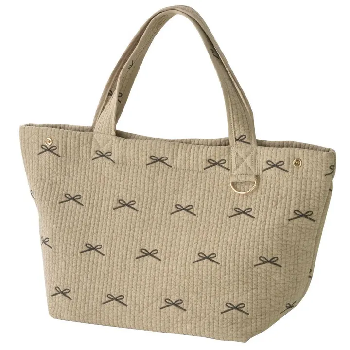 ヌビトートバッグ 刺繍 Lサイズ ヘーゼルナッツ リボン