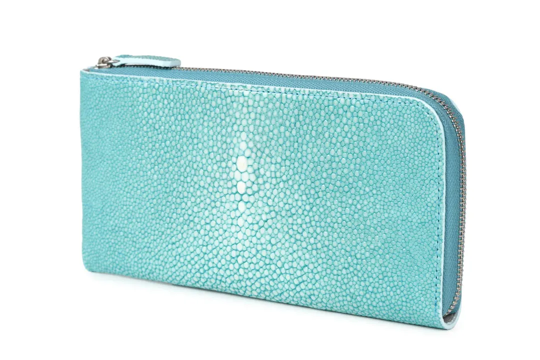 L字ファスナーロングウォレット【スティングレイレザー】 ターコイズ