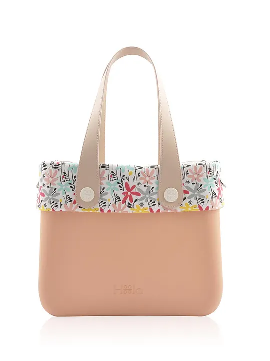 ◆大人可愛いを叶えてくれるヌーディーカラーをメインとしたトートバッグ。<br>見た目だけではなく心まで華やぐ花柄のドレスカバーは取り外し可能で、<br>表情の切り替えに面白味あり。コーディネートに明るさと優しさをもたらしてくれます。A4サイズが入るトートバッグになります。※インナーバッグ付きになります。  ■構成部品 Frame:Nude Coral Flat Handles : Nude Plastic Twists: Cream Alma In-Bag - Cream Frou-Frou : Hoola Blooms