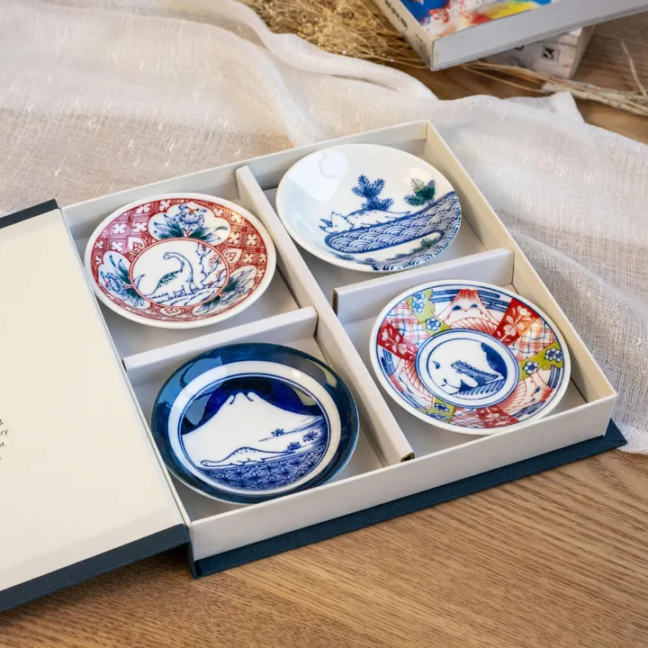 日本の伝統的な文様と地に眠った恐竜たちのコラボレーション! 当社が商売を営む岐阜県瑞浪市は、美濃焼の産地として栄えていますが、一方で化石が採れる街としても有名です。 古き良き魅力的なの文様のなかに、恐竜がひっそりと潜むユニークなデザインは、きっと新しい物語を紡ぐでしょう。 大人から子供まで幅広い世代に愛される一皿に。古典柄に可愛らしい恐竜たちが描かれたまめ皿が集まりました。 4枚で「し」あわせの意味を込めて、しあわせの訪れを願ったギフトセットです。 ブック型の化粧箱にもこだわり、図鑑を開いた時のような特別感とわくわく感あふれるギフトです。 しあわせ図鑑は、もらった時に思わず笑顔がこぼれる一品です。