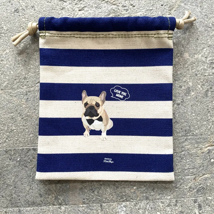 【ボーダー巾着】 オリジナルイラスト わんこモチーフ 巾着 厚手生地 クリスマスプレゼントにも◎ フレンチブルドッグ