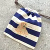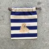 【ボーダー巾着】 オリジナルイラスト わんこモチーフ 巾着 厚手生地 クリスマスプレゼントにも◎ ゴールデンレトリバー