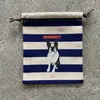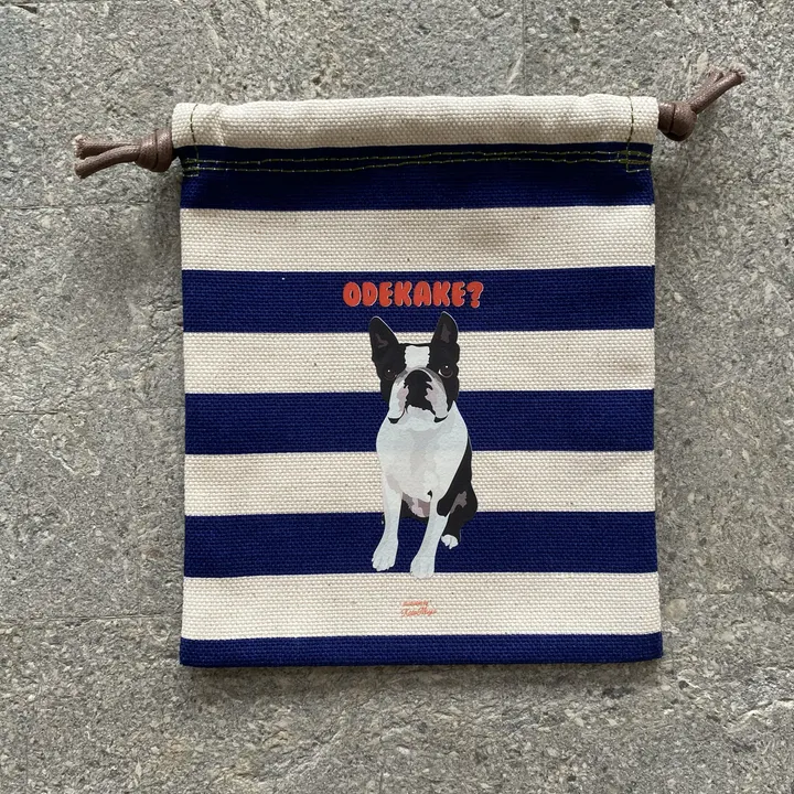 【ボーダー巾着】 オリジナルイラスト わんこモチーフ 巾着 厚手生地 クリスマスプレゼントにも◎ ボストンテリア