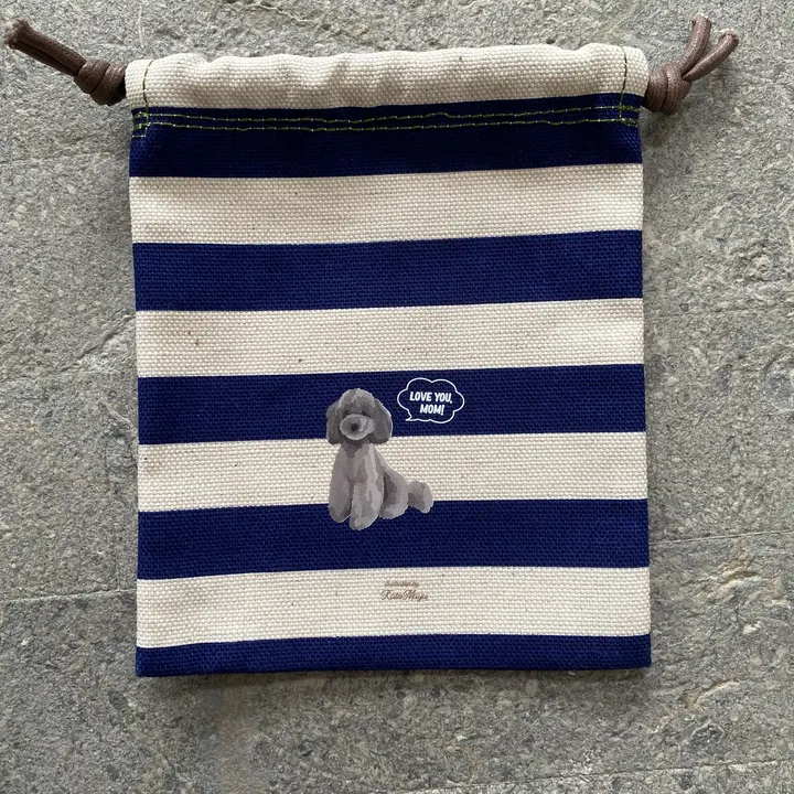 【ボーダー巾着】 オリジナルイラスト わんこモチーフ 巾着 厚手生地 プレゼントにも◎ トイプードル