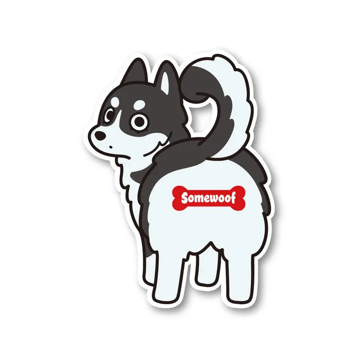 大人気のSomewoofオリジナルのハスキーのステッカーの単品販売です。 人気イラストレーター hoppeさん描き下ろしの犬種イラストのお尻にSomewoofのロゴが入ったかわいらしいステッカーです! シール交換やギフトにもってこいなかわいいアイテムです! サイズ:W53m×H72mm 仕様:屋内用 材質:ミラーコート