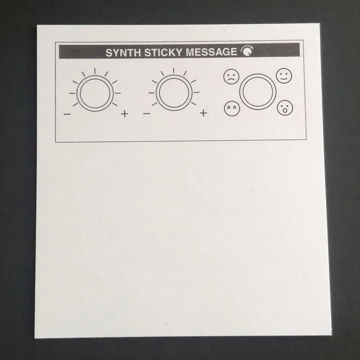Synth Sticky Message(SSM) は シンセサイザーのツマミをデザインしたふせんです。 ツマミ項目に記入して線を加え、 フェイスアイコンをセレクトすれば強力なメッセージ付箋が完成します! クリエイティブメモや、ちょっとしたお礼に。 メカニカルなツマミとメッセージにトキメクこと間違いなし。 サンプルセッティング(使用例)シートもついています。 アイデア次第で色々な使い方ができるシンセサイザー形の付箋です。 〈Synth Sticky Message(SSM) 商品内容〉 付箋20枚 説明書(サンプルセッティングシート付き)