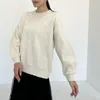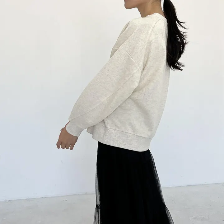 30/10裏毛カーブ切替トレーナー 一般的なスウェット生地と同じ厚みの柔らかい裏毛 肩から袖にかけてカーブした切り替えをいれ肩のラインが特徴で 横から見たスタイルが痩せ見えするよう工夫しています。 シンプルながら独特のディテールがビンテージっぽい雰囲気で、 カジュアルで女性らしいトレーナーです。 着丈62cm 身巾56cm 裄丈72cm 30/10裏毛 裏ループにも繊維原料を櫛で梳き均して、繊維方向がそろったわた状の塊にする作業で繊維を糸にせずにそのまま編んで生地にする際、短繊維や夾雑物、ネップなどを完全に除去する工程を追加することにより、糸ムラや毛羽が少ない均整な糸なるよう丁寧に糸を配してふくらみを出した柔らかい素材です コットン 100%、リブ:コットン95%PU5%