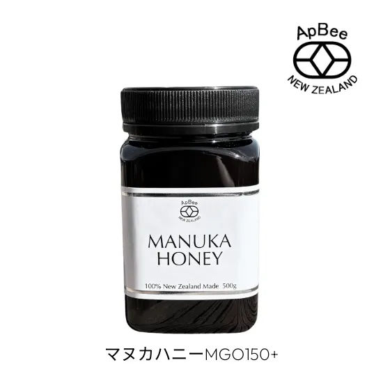 アピビーのマヌカハニー(MGO150+)【銀ラベル!】 --------------------------- 完全非加熱&無添加 アピビーのはちみつは創業以来『完全』非加熱、無添加にこだわり続けています。 ニュージーランドでも珍しい、昔ながらの手充填を徹底し充填時の温度は人肌以下に管理。1つ1つゆっくりとボトル詰めされます。そのため殺菌、抗菌、消炎、整腸作用はもちろん、生マヌカハニーならではのビタミンやミネラルなどをはじめとする栄養素や生きた酵素がぎゅっと詰まったのモノフローラルマヌカハニーがアピビーのこだわりです。「マヌカハニーには苦くてクセがある」という薬っぽさもほとんど感じられない、甘みがしっかり口に広がる濃厚なキャラメルのような風味。非加熱と鮮度にこだわったマヌカハニーならではの味わいをご堪能ください。 ニュージーランド政府認定 - モノフローラルマヌカハニー - ------------------------------ アピビーは一般的な数値にこだわらず、モノフローラルマヌカハニーの純度にこだわった蜜作りに携わってきましたが、数値についてのお問い合わせを多くいただくため、ラベルの栄養成分表の上にMGO数値を記載することにいたしました。品質は今までと変わらず、自然の恵み、非加熱のアピビーのハイグレードマヌカハニーをお楽しみください。必要な方には証明書もお送りさせていただくことも可能です。お気軽に備考欄にご記載ください (バッチごとにMGOは異なります)。こちらのマヌカハニーはMGO150+、日々の健康管理に最適なグレードとなっております。 毎日の健康のためにワンスプーン --------------- 自然派食品として、毎日の習慣に モノフローラルマヌカハニーは、健康意識の高い方の間で選ばれている自然由来の食品です。 マヌカハニー特有の成分に加え、ビタミンやミネラル、アミノ酸、有機酸、酵素など、さまざまな栄養素を含んでいることが知られており、日々の食生活を意識する方に取り入れられています。 カラダの内側から整える食習慣を 食生活のバランスを大切にしたい方や、内側からのコンディションを意識する方に親しまれているマヌカハニー。 鉄や銅、葉酸などの栄養素を含み、栄養補給を意識する方や、美容面を気にかける方からも注目されています。毎日の食事にプラスすることで、健やかなライフスタイルをサポートする一食品として活用されています。 また、乾燥しやすい季節や空調の効いた環境で、喉まわりが気になるときに、のど飴をなめるような感覚でゆっくり味わう方もいます。 アピビーのおいしさから始まる、マヌカハニーを取り入れた毎日の食習慣。 自然の恵みを、ぜひあなたの生活の一部としてお楽しみください。 ニュージーランド南島の森から健康をお届け -------------------- アピビーのはちみつは南島の北部、ネルソンやマルボロ地区で採れたはちみつをご提供しており、みつばちは海と山の恵みを感じながらのびのびと暮らしています。 -商品詳細- 商品名: マヌカハニー(モノフローラルマヌカハニー)(MGO150+) 内容量: 500g(プラ容器) 原産国: ニュージーランド 保存方法: 直射日光をさけ冷暗所にて保存ください ※はちみつを含みますので1歳以下のお子様には与えないでください。