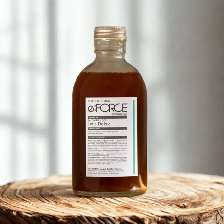 薬剤師が開発した和漢エキス飲料 e:FORCE(イーフォース)レッツ・リラックスの濃縮シロップタイプです。 リラックスする間もなく頑張っている方におすすめしたいエゾウコギ、緊張からの解放をサポートするリンデンフラワー、レモングラスなどをブレンド。『ペースリセット』に着目した7種の天然植物エキスに100%オレンジ果汁を配合。 < こんなお悩みの方を想像して薬剤師が調合 > ・なかなか自分のペースに切り替えが出来ない方 ・いつも張り詰めた感覚が取れない方 ・体が冷えたり、気持ちが落ち込みやすい方 ・休みの時でも頭から離れな事がある方 ・しっかりとした休息感が感じられない方 ☆本製品は濃縮シロップタイプです。 水または炭酸水、お湯で割ってお飲みください。シロップ=1:希釈水=6を基準にお好みの分量と甘さでご調整ください。 <グラス1杯分(210ml)の場合> ・シロップ=30ml 希釈水=180ml*10回ご利用できます。 ・350mlでご利用の場合は6回ご利用いただけます。