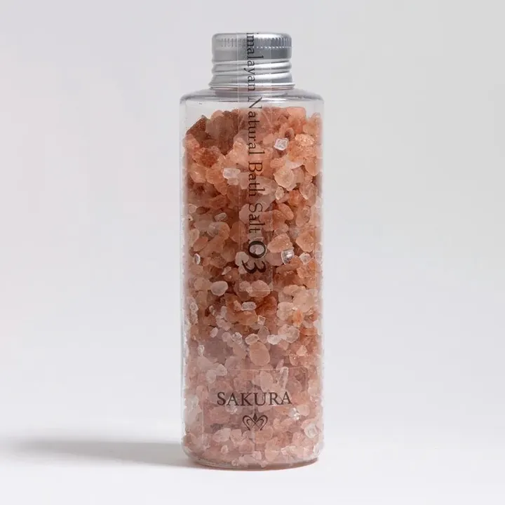 岩塩とエッセンシャルオイルをブレンドしたホテル仕様のアロマバスソルトです。ベースとなるコーラルソルトやダイヤモンドソルトはルビーソルトの持つ酸化還元力はありませんが、岩塩特有の豊富なミネラル成分によりお肌を引き締め、水道水を優しい水へと変化させます。さらに香りをプラスしてリラックス効果を高めました。是非高級ホテルのようなリッチな気分でご家庭のバスタイムをお楽しみください。 香り SAKURA 〜甘くやさしい香り〜 商品特徴 天然ミネラル成分を豊富に含んだヒマラヤ岩塩を使用。肌を引き締めキメを整える作用があります。ゆっくり汗を排出する半身浴にもオススメです。 ご使用方法 浴槽約180Lに対し本製品を20g程度投入しよくかき混ぜてからご入浴下さい。 成分 塩化Na(ミネラル塩)香料(ハーブオイル)