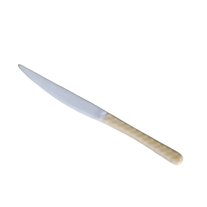 「捨てる」なんて言わせない。その名は 白文字。 和菓子用の楊枝は、一度使うと衛生的にも材質としても再利用が難しいもの。 この白文字は、捨てることなく洗って何度も使用できるエコなアイテムです。鋭い刃先で切れ味も遜色ない代物です。