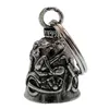 アメリカ製ガーディアンベル社製ガーディアンベルです。 MADE IN USA アメリカ製 交通安全 魔除け 御守り ガーディアンベル アメリカのライダーの間には、事故や、転倒の原因は「道路にひそむ悪魔」によるいたずらだという伝説があります。悪魔は走る者に悪戯やトラブルを運んできます。このベルは美しい音色で悪魔たちを追い払うと言われ愛されています。そんな悪魔のいたずらを防ぎ、御守りとなるのが、守護者のベルという意味を持つガーディアンベル。 日本でも鈴の音(ね)は神道では魔除けの音と言われています。ピューター製の鈴でいい音色でガーディアンベルはデザインも様々あります。 またガーディアンベルにまつわる伝説として、プレゼントとして送られたベルの効果は、自分で手に入れたものの2倍になると言われています。 それゆえに彼氏・彼女・友達・家族へのプレゼントとしての人気も非常に高まっています。 シルバーアクセサリーのようにおしゃれに装着できて素敵な音色を奏でるガーディアンベル。 バイカー以外にも自転車や旅・交通安全のお守りとしてお使いいただけます。 カバン・ランドセル・キーホルダー・ペットの首輪等に付けてお使いください!! ※タイラップ等でバイクのフレームにも簡単に取り付けできます。 アメリカンモデルだけではなく、旧車ファン、レプリカライダーまで、さらにバイクだけでなく、自転車や車にもピッタリな御守りとなっています。 アクセサリーとしても人気で、アイディア次第で車体だけでなく、キーホルダーや鞄など、どこにでも付けておしゃれに楽しめます。