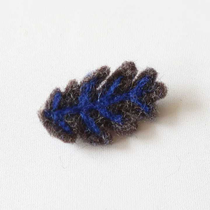 カシワの葉をイメージしたフェルトブローチ。葉と葉脈の楽しい色合わせが◎帽子につけたり、コートのワンポイントにも。