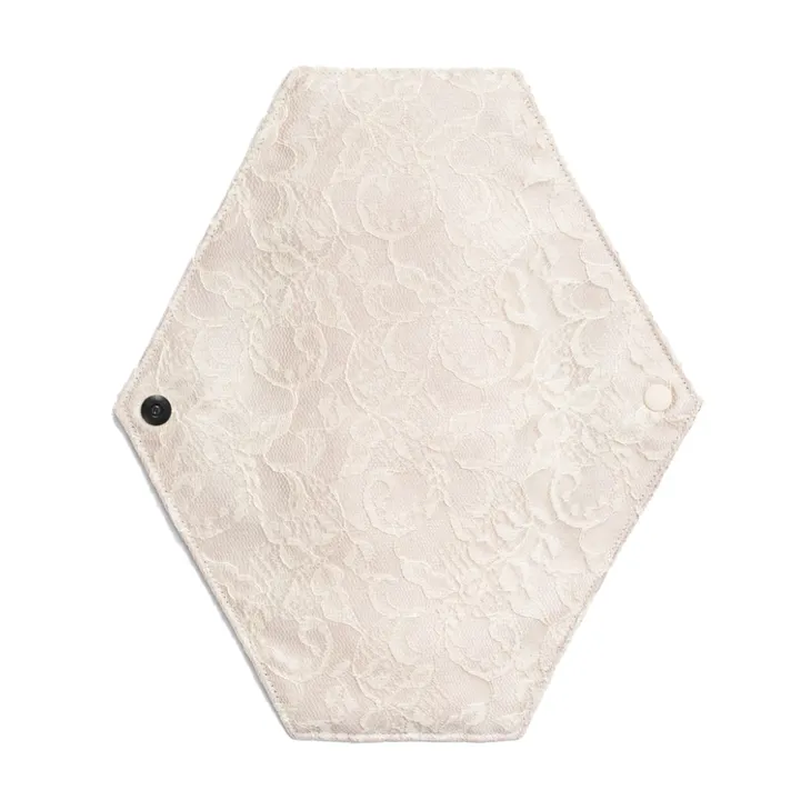 私らしさにこだわりたいリュクスな女性のためのデリケートゾーンランジェリー。 『サニタリーからランジェリーへと世界を変える』 これまで “消耗品” として扱われてきたサニタリーライナーを、「ランジェリー」という新しい価値 としてご提案します。 シルクだからこそ!ブルーデーの肌トラブルを防ぎ、心地よく過ごせます。 こだわりぬいたエレガントなレースで、ブルーデーもときめくハッピーデーに。 <素材>(5層構造) コットンシルク(群馬県産シルク使用・ウォッシャブル加工済み) 吸水体(コットンネル) 透湿防水シート サテン レース <商品サイズ> H=約22cm W=約20cm(使用時はおよそ22cm×10cm) <商品の色> 肌面:ブラック(コットンシルク) 外面:ベージュ(ベージュレース・ベージュサテン) ※撮影環境により、多少実際のカラーと異なる場合がございます。 【ご使用方法】 ショーツのクロッチ部分に置き、レース面がショーツ側に合わさるようにセットします。 スナップボタンのついているサイドをショーツの外側へと折り返し、合わせてとめてください。 【お手入れ方法】 ・ご家庭の洗濯機で洗っていただけます。 ・乾燥機のご使用は避け、陰干しに。 ・経血や気になる汚れがついてしまった場合は、30度以下のぬるま湯か水につけ置きし、手洗いなどで落としてから、洗濯機へ。
