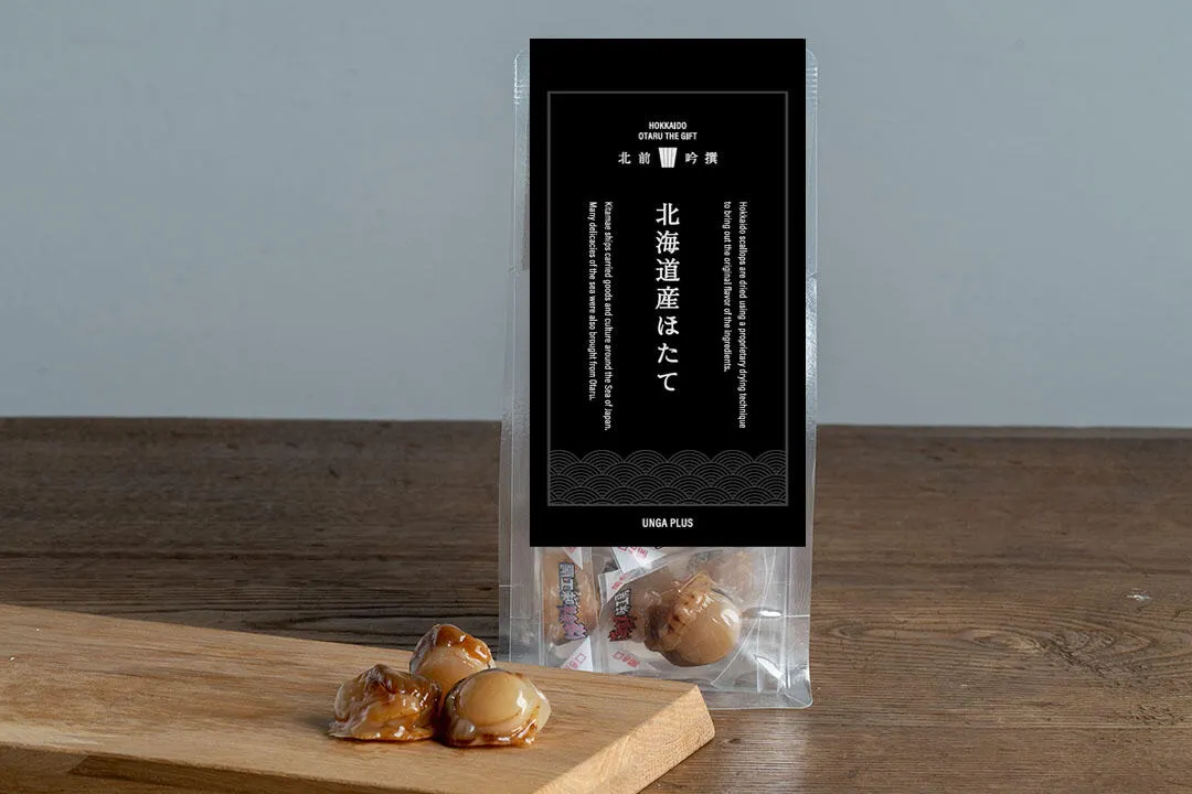 北海道産ベビー帆立を独自の乾燥技術で丁寧に仕上げ、素材本来の甘味・旨味・やわらかさを引き出しました。 日本海を巡り物資と文化を運んだ北前船。小樽からも沢山の海の幸が運ばれました。そんな海の幸の旨味を凝縮した、特製おつまみ燻製シリーズです。一つ一つ真空パックの個包装になっている、食べやすい一口サイズ。ビールや日本酒によく合います。